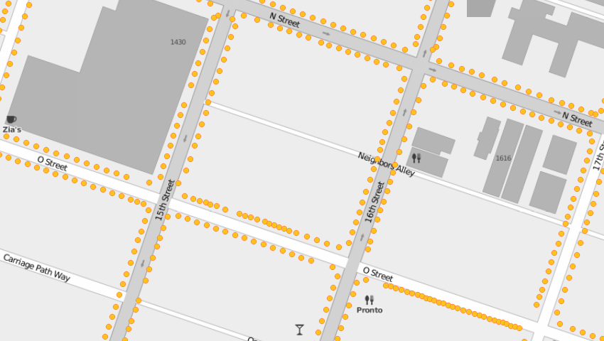 Examining the OpenStreetMap base layer, it’s easy to see how much detail is missing compared to a satellite map. Mapillary images are a reminder of how much rich detail is on the ground when doing some armchair mapping. And of course, if you’re on the ground, whether out for a walk, driving and parking a vehicle, or cycling just beside the curb, it’s obvious that the map isn’t very detailed about the “spaces in between”. In other words, there is a significant amount of information missing. When a machine needs to access map data—whether a routing service using the Overpass API, or a hypothetical autonomous vehicle—the OSM database is simply not very informative about the curb.