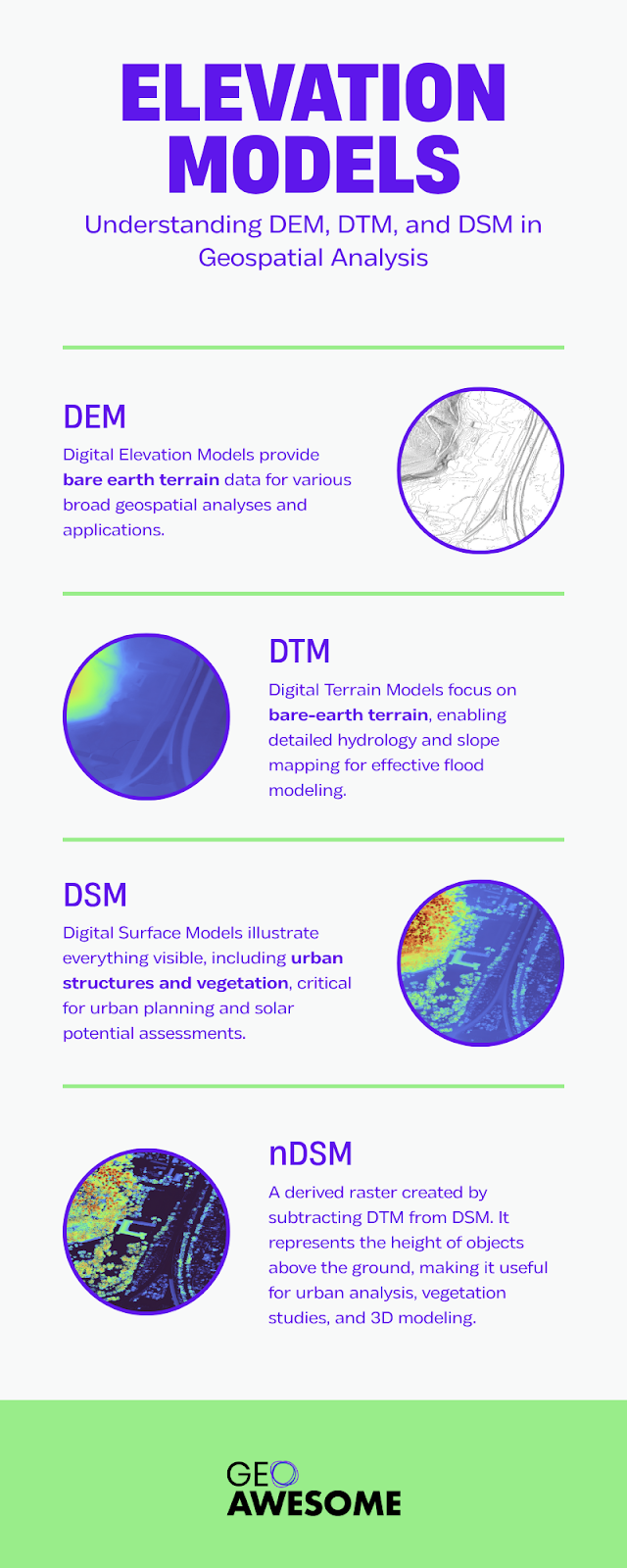 A DTM strips away vegetation and structures, exposing the true ground surface. It’s ideal for terrain analysis.