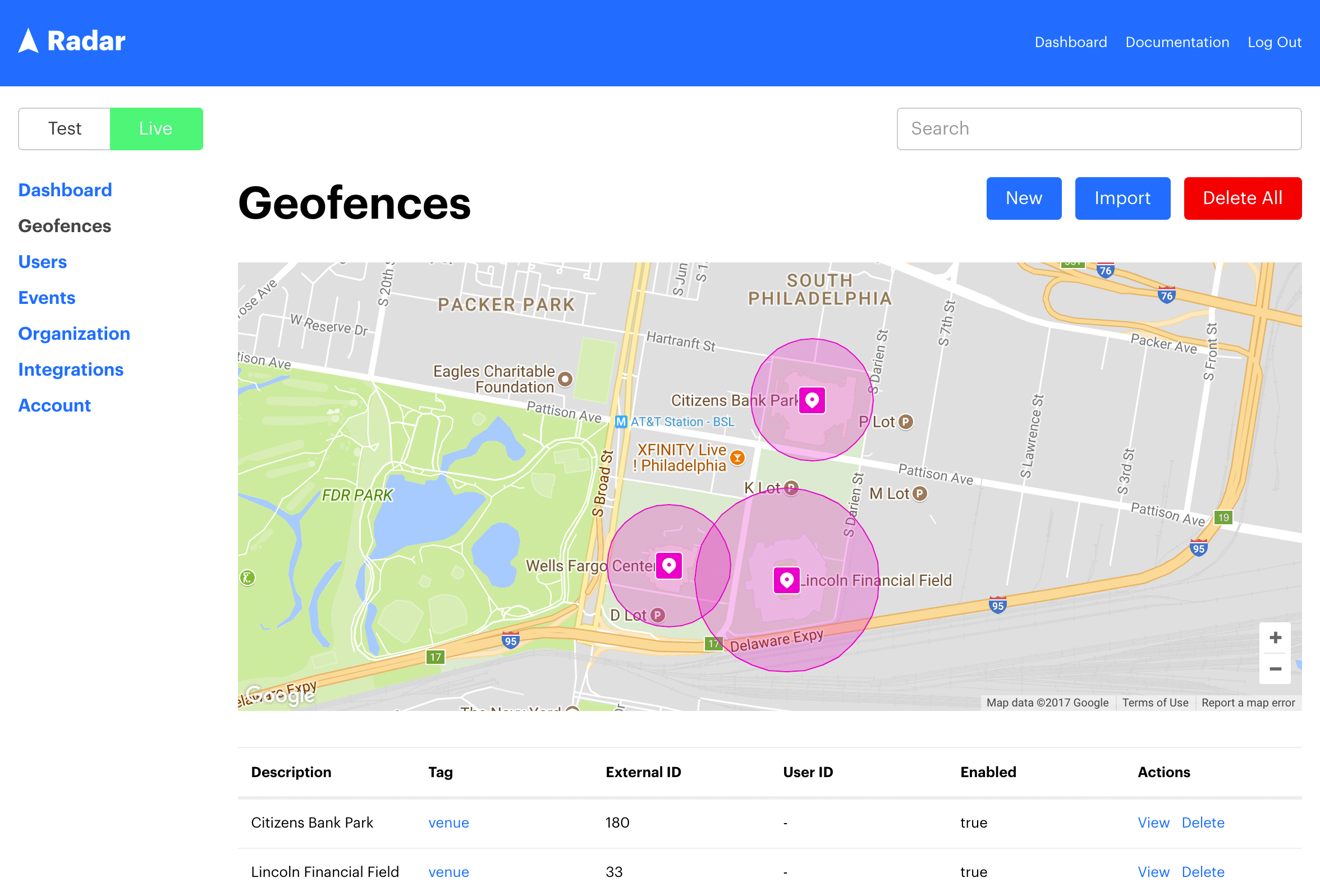 - Geofences using Radar.io
