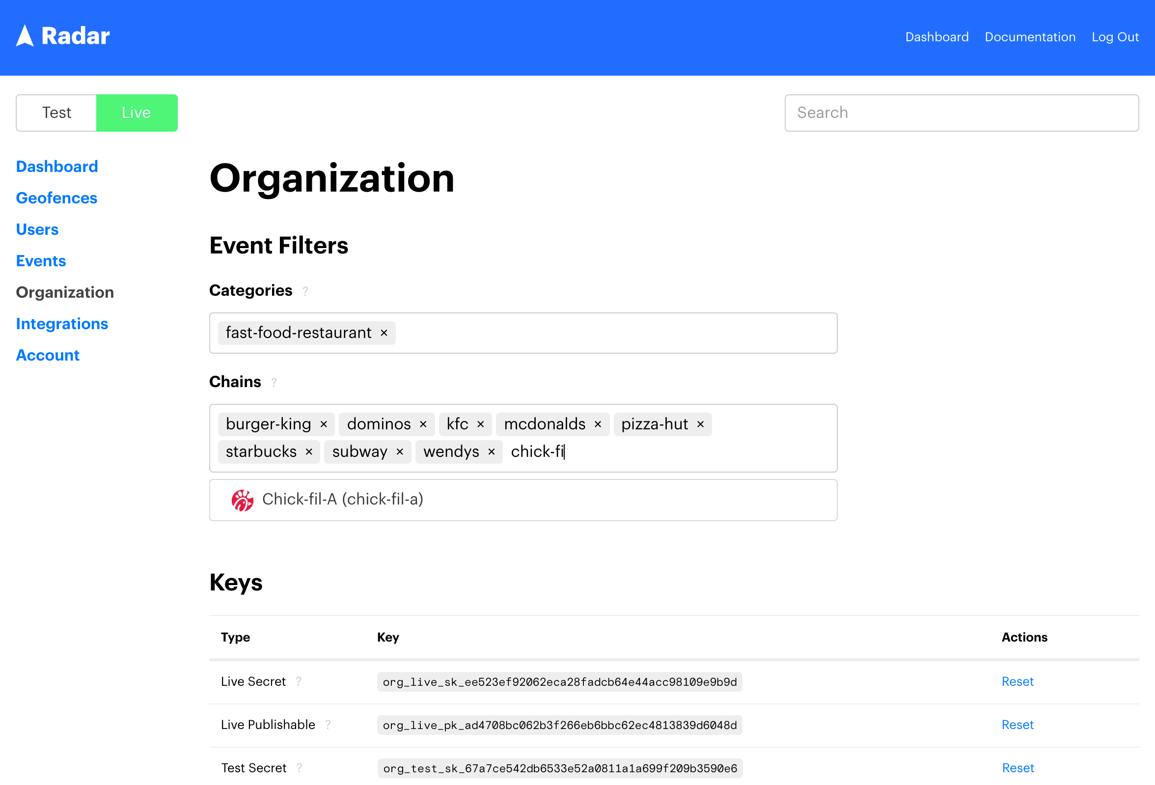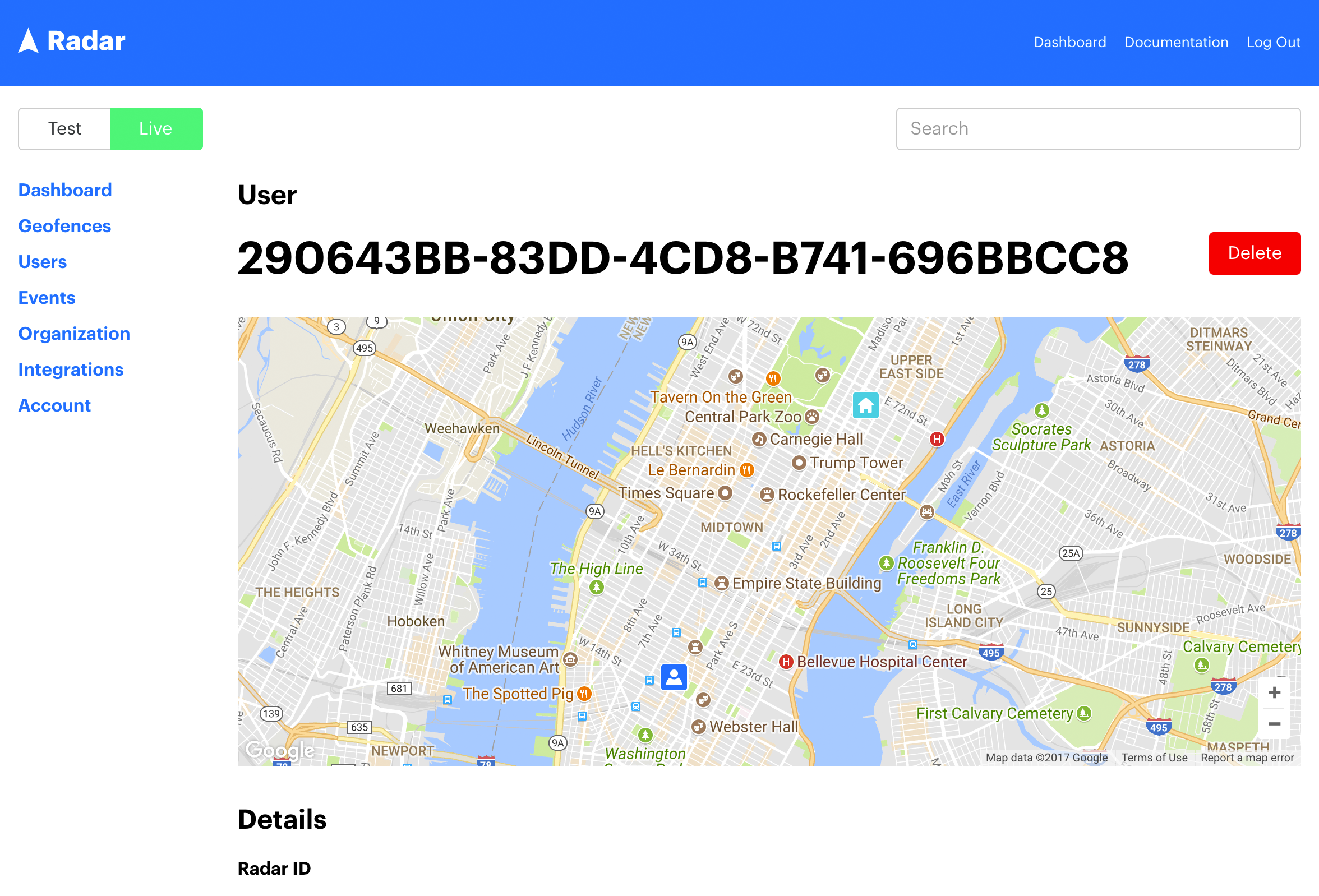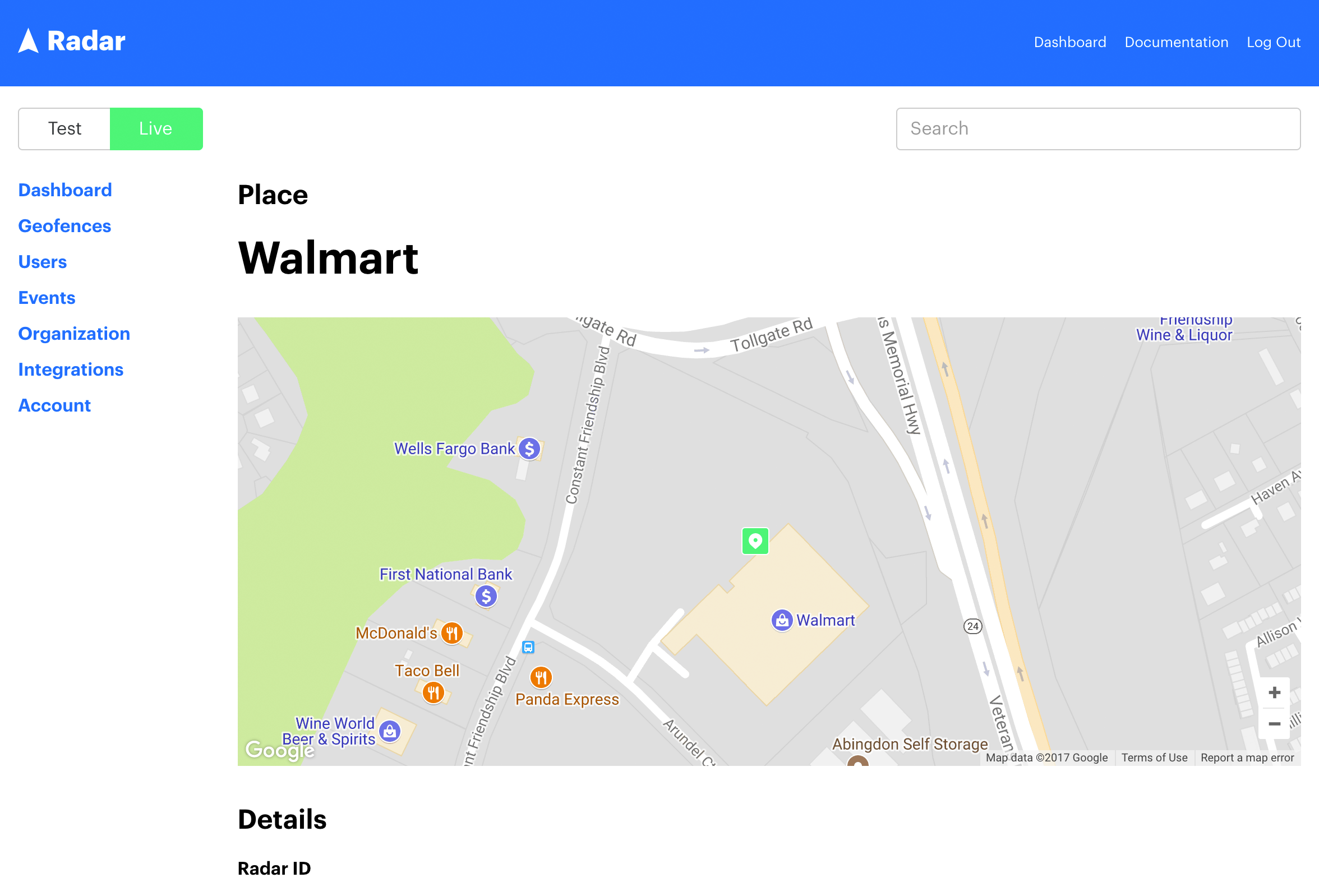- Places using Radar.io