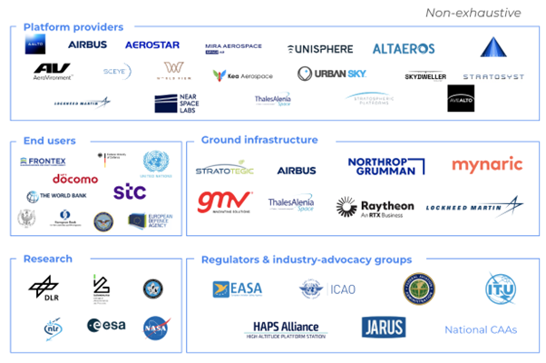 Supporting this ecosystem are research institutes, regulators, and advocacy groups like NASA, ESA, EASA, ICAO, and the HAPS Alliance. They’re setting the standards, testing new technologies, and helping shape the rules that will guide safe and scalable HAPS operations. Their work is especially important as companies look to integrate these platforms into regulated airspace and global communication networks.