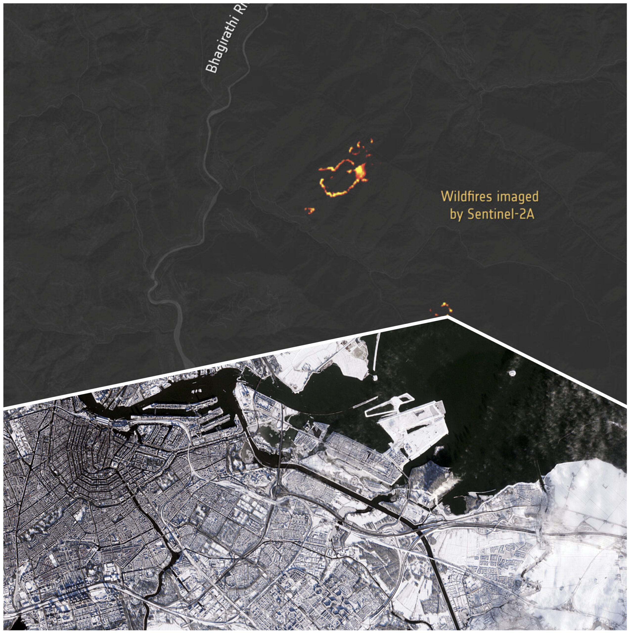 Even as the sun sets, the “eyes in the sky” remain active. The Copernicus Sentinel-2A satellite has successfully tested “night vision” capabilities, capturing imagery of gas flares in the Middle East, wildfires in India, and fishing boats off South Korea during night-time passes. A striking example of its daytime imagery also surfaced recently, with snow-covered Amsterdam captured in stunning detail from orbit.