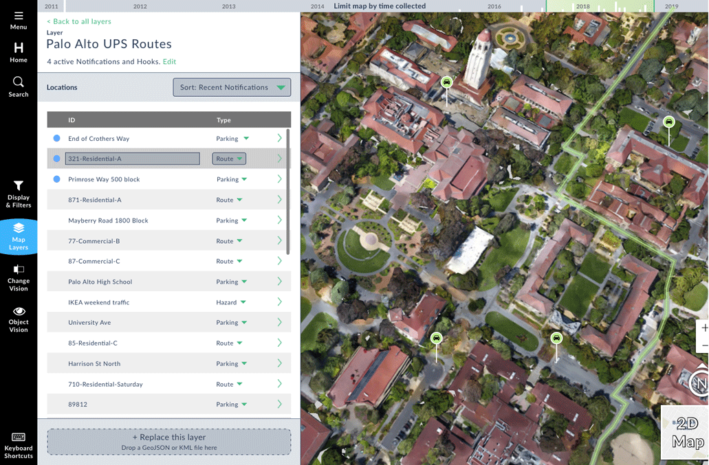 For example, UPS logistic planners don’t need to look at a new map of Palo Alto each day, instead they need to know what changes have occurred (e.g. construction at delivery location) that will impact the efficiency of their Palo Alto routes.
